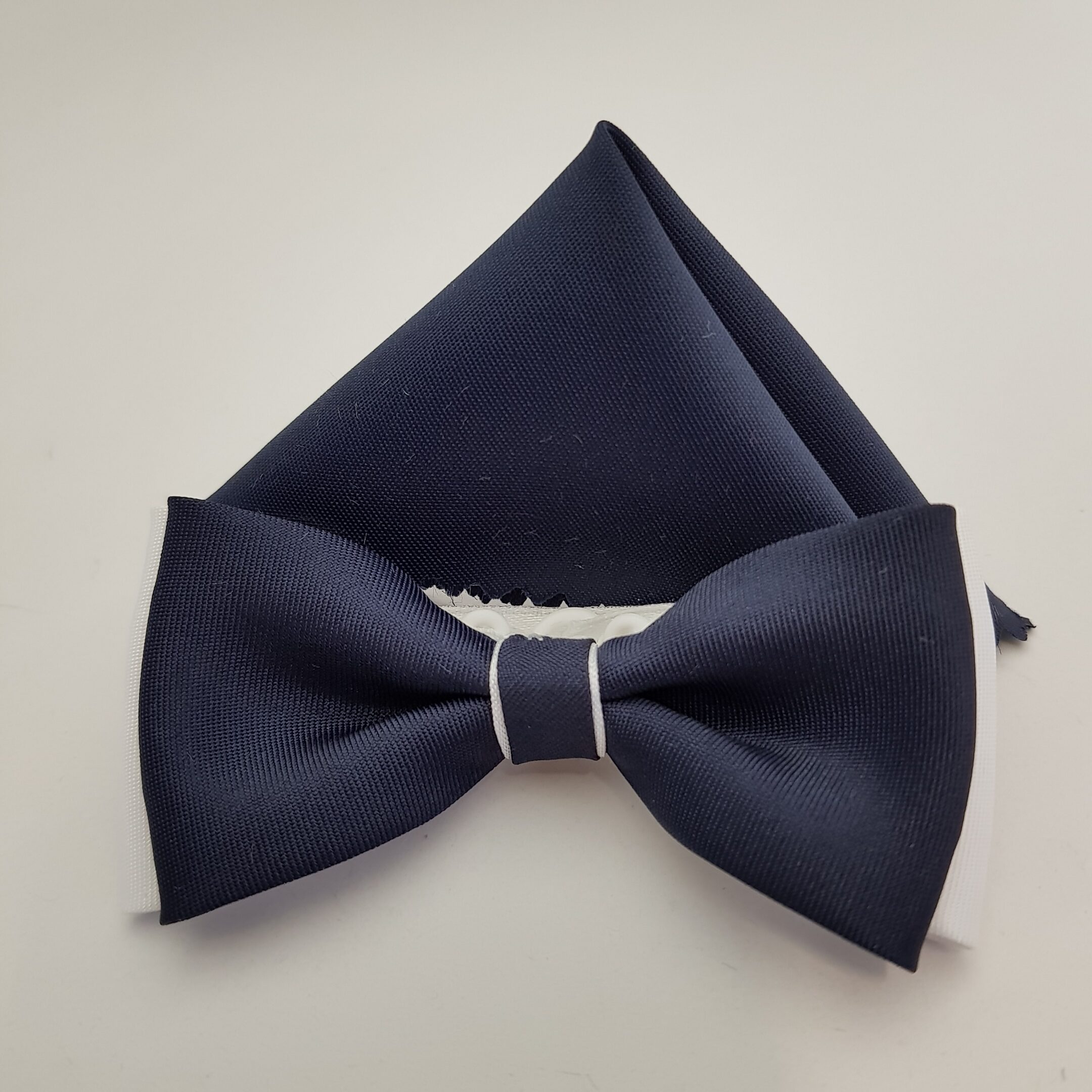 KOLOR: 18/27 GRANATOWO BIAŁA DESEŃ: BEZ WZORU STRUKTURA: JEDNOLITA GŁADKA TYP: NIETOPERZ KLASYKA W KOMPLECIE: BIAŁA POSZETKA – CHUSTECZKA DO KIESZONKI